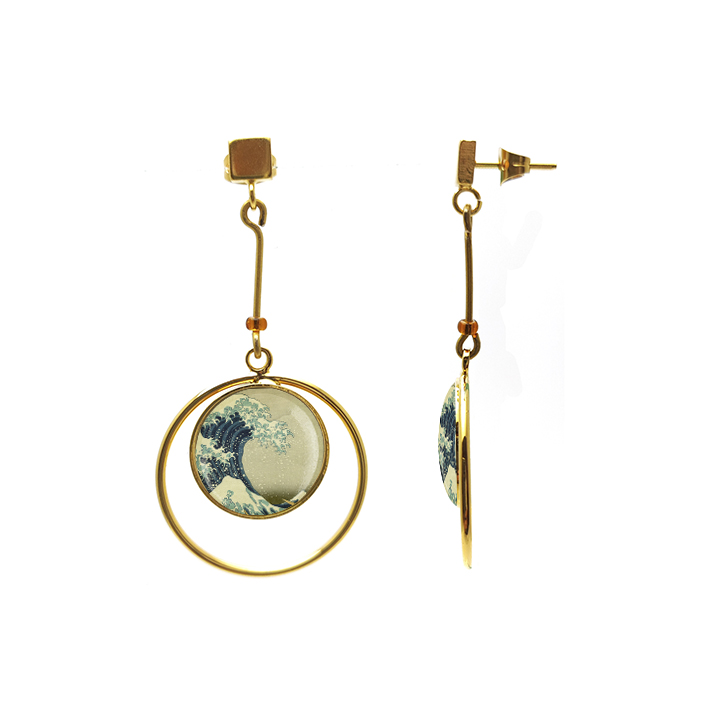 Pendiente 16mm con extensión, cuadradillo y 2 abalorios rocalla. Acabado oro brillo.